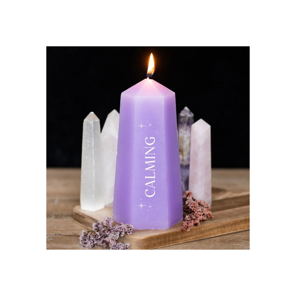 Calm the senses and promote inner strength with this Calming Crystal Candle. Shaped like a purple crystal tower, this candle offers up to 30 hours of burn time to gradually reveal a rough amethyst crystal hidden at the bottom. Perfect for setting intentions and manifesting your dreams, it's the ideal accessory to complement your sacred space. Unscented paraffin wax. Burn on a protected surface.