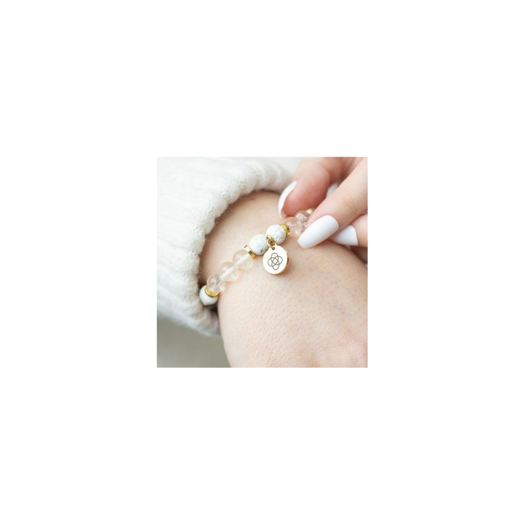This friendship lava bead bracelet and essential oil gift set uses aromatherapy to enhance the metaphysical healing power of crystals. Crafted with natural clear quartz and lava beads, the bracelet serves as a diffuser for the included chamomile oil, offering protection and emotional stability. The addition of the Celtic friendship knot charm symbolises eternal love, loyalty, and faith, making it an ideal gift for cherished friendships. Crafted with durable materials and packaged in a luxury gift box, this elasticated bracelet combines beauty and functionality, offering a thoughtful present for various occasions.