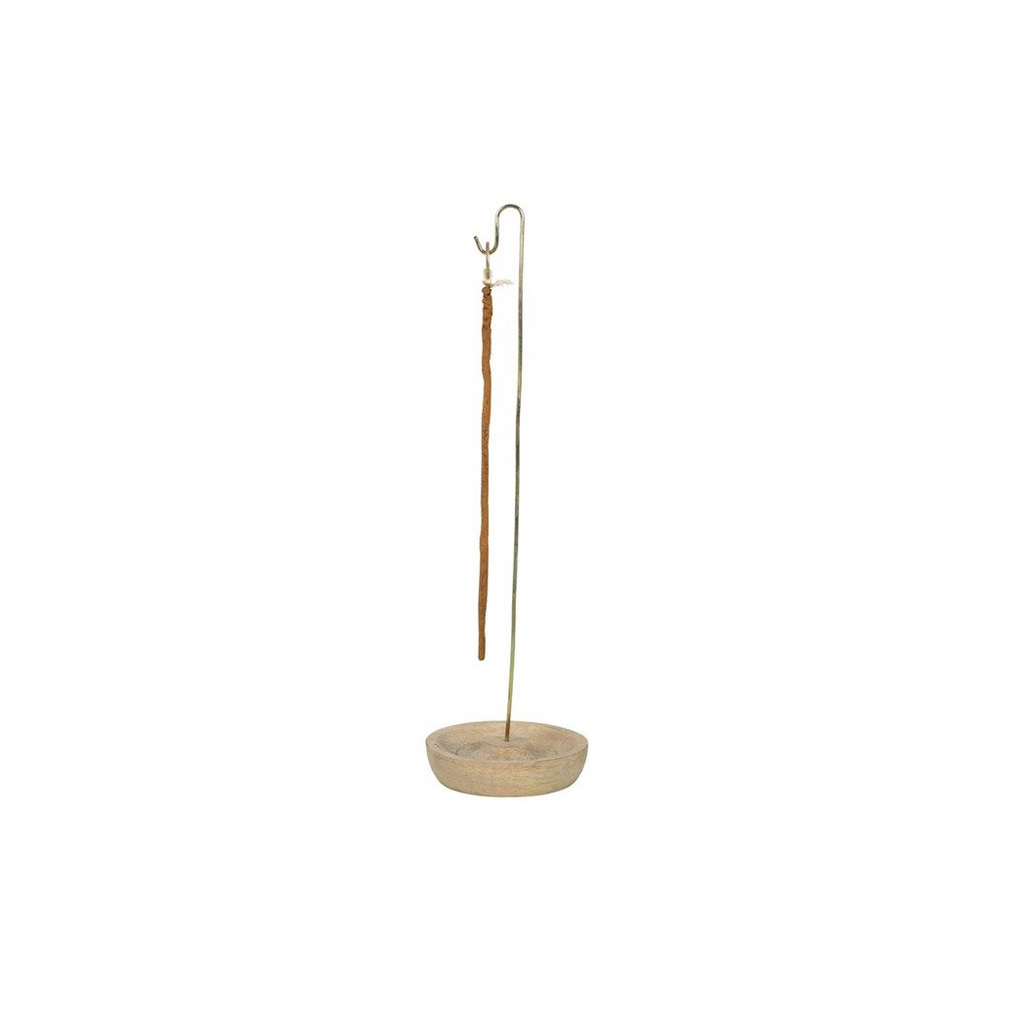 Handcrafted with mountain herbs and natural essential oils, Tibetan rope incense was traditionally used by kings to fragrance their courtyards. Now used during modern meditation practices, this unique style of incense will purify spaces while providing strong aromatherapy benefits. To use, fix the included stand to its base and hang the incense rope from the metal hook. Ignite the bottom of the rope for a few seconds, blow out, and allow to smoulder. The incense will slowly burn away, providing hours of relaxing fragrance.