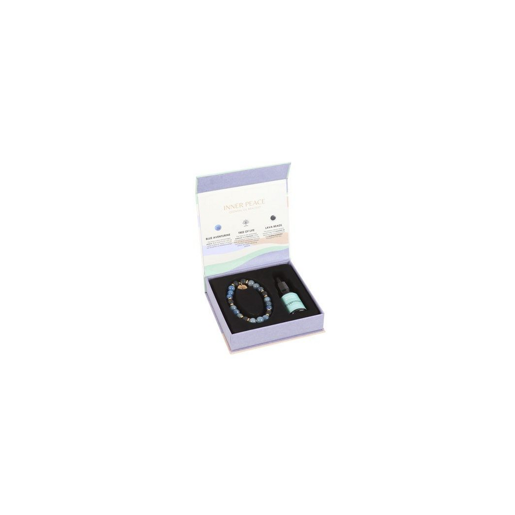 This inner peace lava bead bracelet and essential oil gift set uses aromatherapy to enhance the metaphysical healing power of crystals. Crafted with natural blue lace agate and lava beads, the bracelet serves as a diffuser for the included peppermint oil, promoting stress reduction and boosting energy. The addition of the tree of life charm symbolises growth and harmony, offers tranquility and serenity on the go. Crafted with durable materials and packaged in a luxury gift box, this elasticated bracelet combines beauty and functionality, offering a thoughtful present for various occasions.