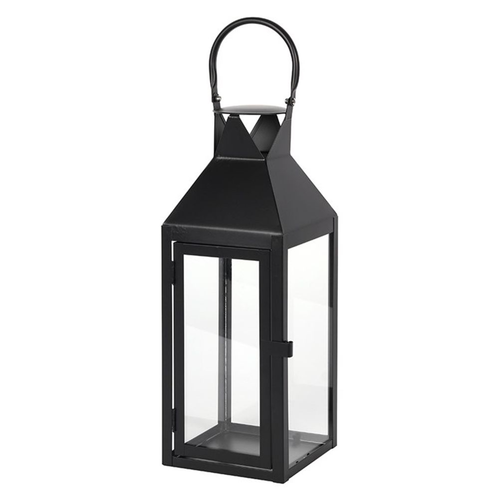 This beautiful matte black lantern is great for use both indoors and out. The lantern features a chunky metal handle and glass windows which allows you to see inside the lantern. Candle not included. Product Dimensions: H40cm x W15cm x D14cm Packaged Dimensions: H43cm x W17cm x D17cm