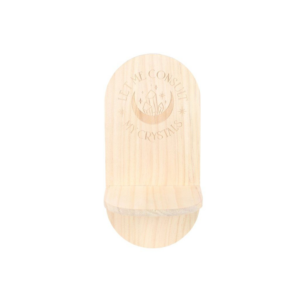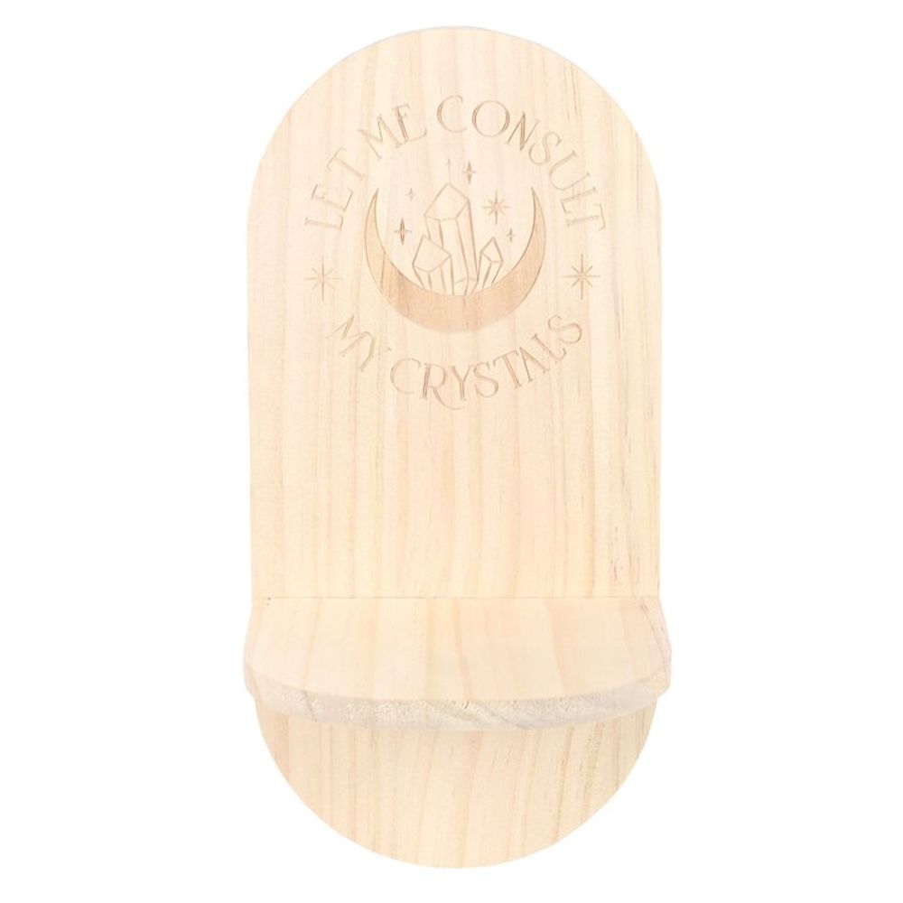 Create a space to recentre and focus with this wooden 'Let Me Consult My Crystals' altar shelf. Display crystals, tarot cards, words of affirmation and other items of spiritual significance to aid in manifesting dreams and goals.