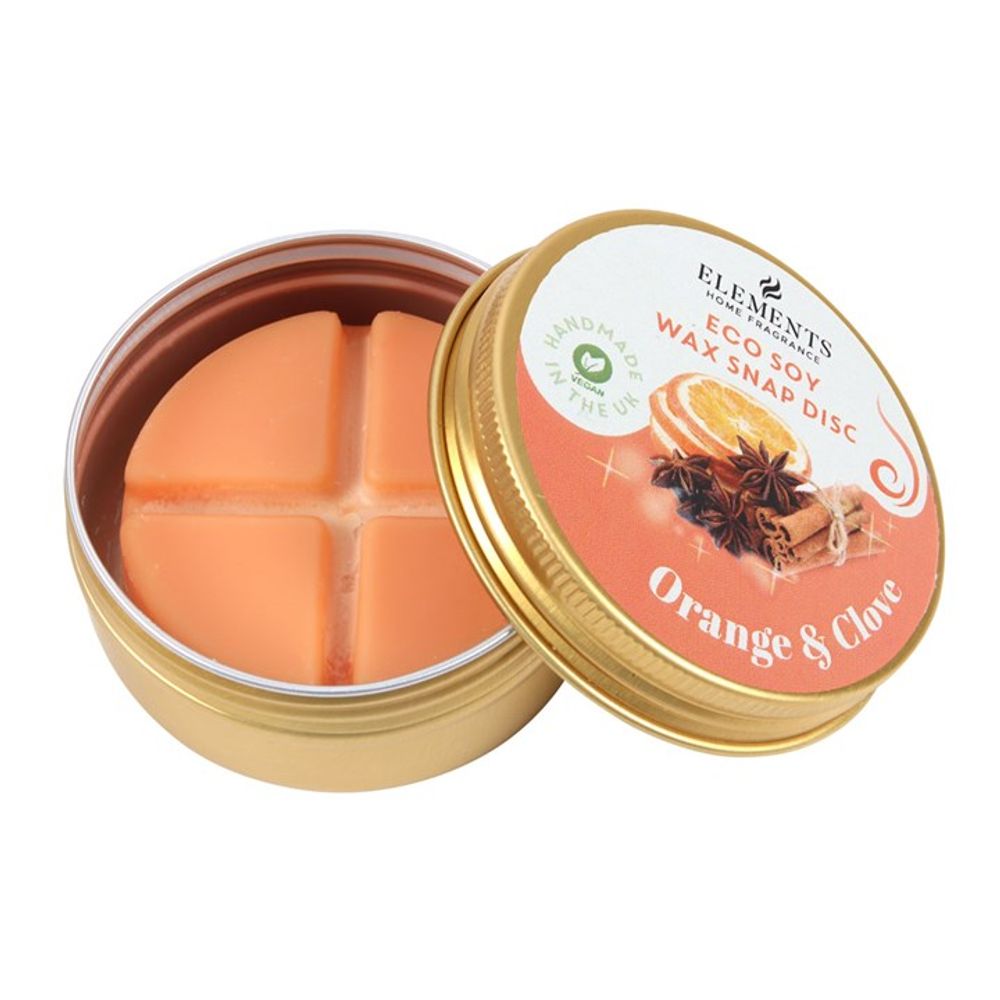This Orange & Clove wax melt tin from our Christmas home fragrance range comes in a new, easy-to-use disc form. Each 25g disc is divided into 4 sections for up to 45 hours of long-lasting fragrance. Handmade in the UK from 100% vegan soy wax and high-quality fragrance oil blends, our soy wax melts are non-toxic and completely biodegradable. Also available in a display with 7 other festive scents. Scent description: The invigorating scent of fresh orange mixed with spicy ground cinnamon, clove and nutmeg is sure to awaken and refresh a cold, grey winter's day. A real crowd-pleaser all season long!