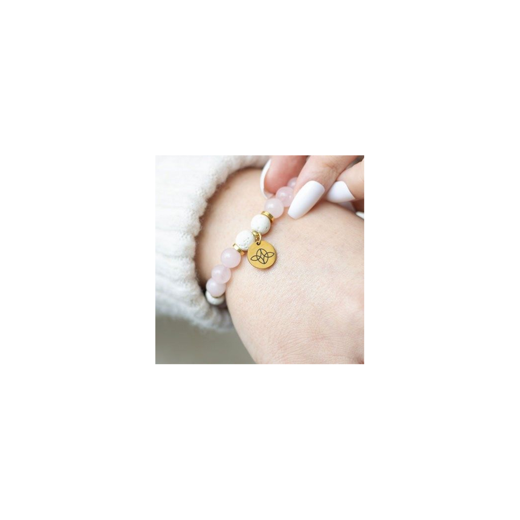 This self love lava bead bracelet and essential oil gift set uses aromatherapy to enhance the metaphysical healing power of crystals. Crafted with natural rose quartz and lava beads, the bracelet serves as a diffuser for the included rose geranium oil, promoting love and confidence. The addition of the Celtic Serch Bythol charm symbolises everlasting love, making it a perfect gift for those seeking to practice self care as a daily ritual. Crafted with durable materials and packaged in a luxury gift box, this elasticated bracelet combines beauty and functionality, offering a thoughtful present for various occasions.