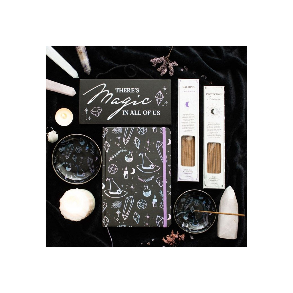Infuse any space with calming and protective energy with this pack of 2 incense sticks sets. The calming chamomile and cedarwood fragrance is ideal for relieving stress and promoting a peaceful environment, while the sage and sandalwood fragrance possesses protective properties for bringing a sense of security. A perfect gift for lovers of all things mystical. These incense sticks are sold as a set of 2, with 30 sticks of sage and sandalwood (protection) and 30 sticks of chamomile and cedarwood (calming).