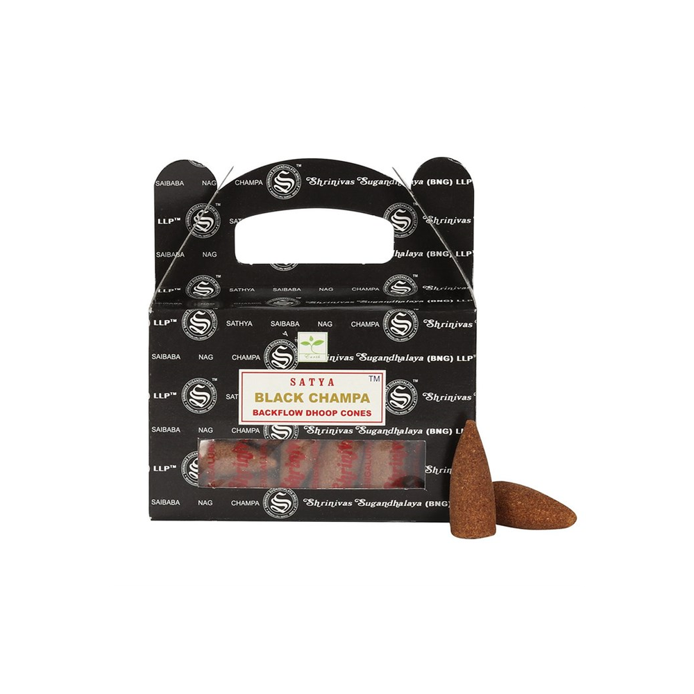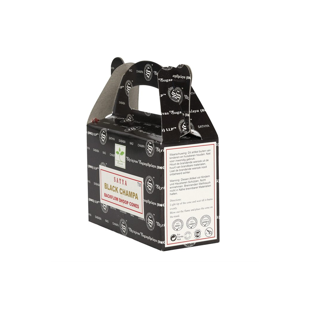 This display box contains 6 packs of beautifully scented Black Champa backflow incense cones developed by Satya. The cones are crafted using the highest quality ingredients to offer longlasting fragrance. Use these cones with a backflow incense burner to create stunning smoke displays. Product Dimensions: H11cm x W10cm x D4cm Packaged Dimensions: H11.5cm x W20.5cm x D12.5cm