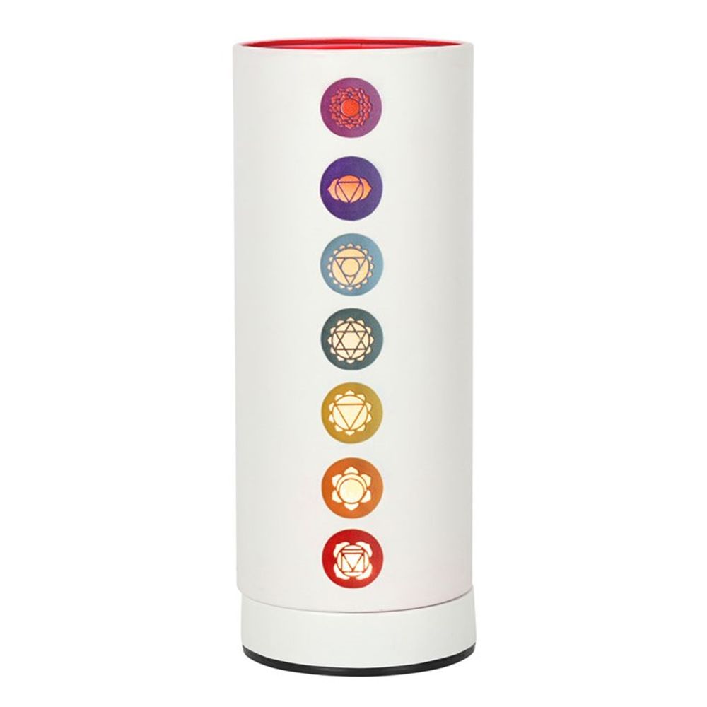Electric aroma touch lamp featuring the symbols of the Seven Chakras making it a perfect accessory for meditation spaces and relaxation areas. Add a few drops of fragrance oil to the water well inside and tap the lamp to turn it on and start releasing beautiful scents.USB power cablePlug-in AC adaptor not includedCompatible with 5V 2A or 5V 3A AC adapters. Product Dimensions: H25.5cm x W10cm x D10cm Packaged Dimensions: H26.5cm x W12.5cm x D12.5cm