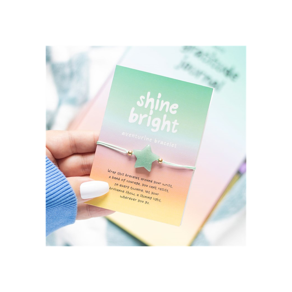 Radiate confidence with this charming green aventurine crystal star bracelet. Presented on a heartfelt backing card that reads 'Shine bright' and includes a short poem for an extra boost of positivity. An ideal gift to remind someone special of their courage and resilience.